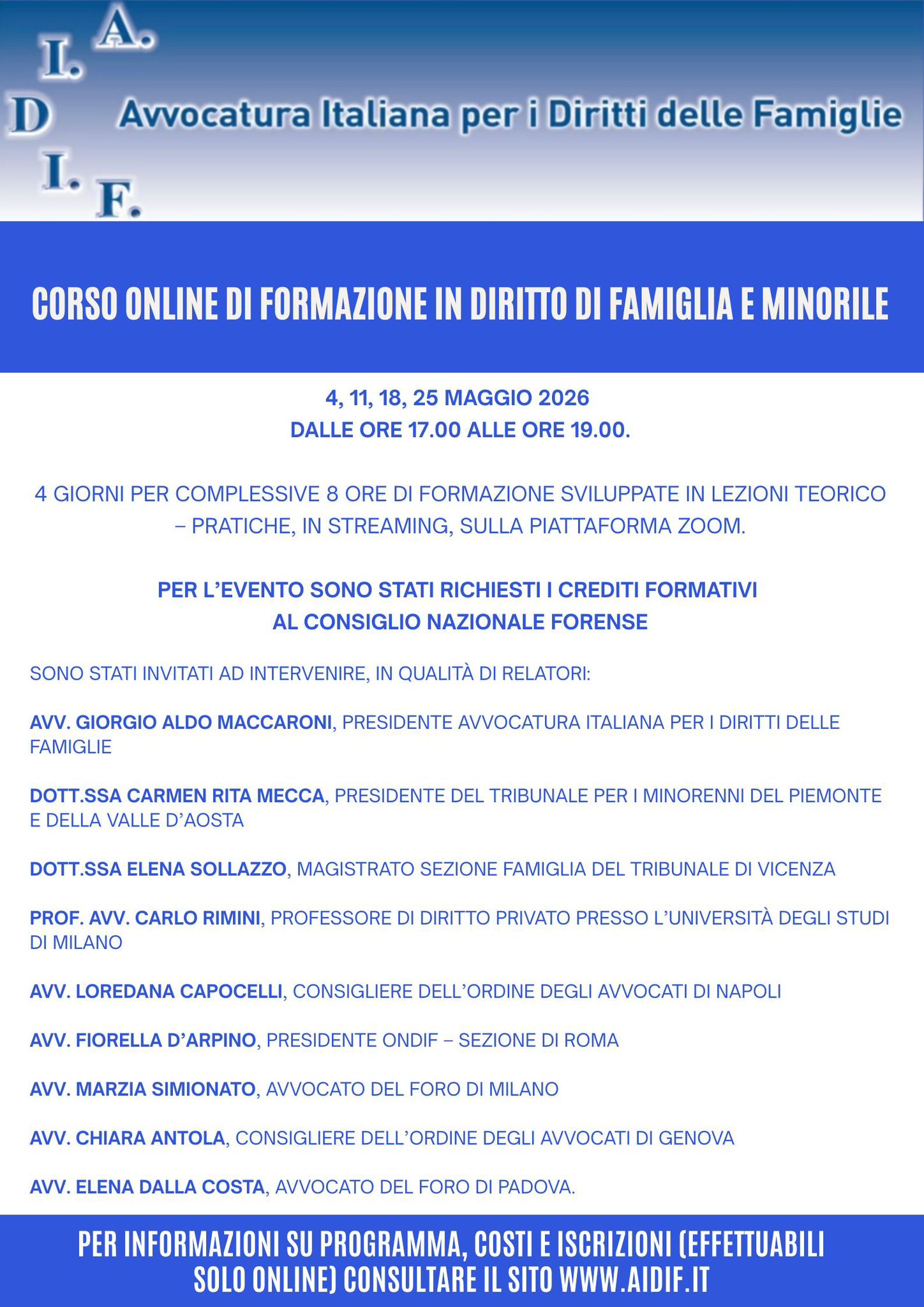 (per informazioni: www.aidif.it/corso-online-maggio-2026)
