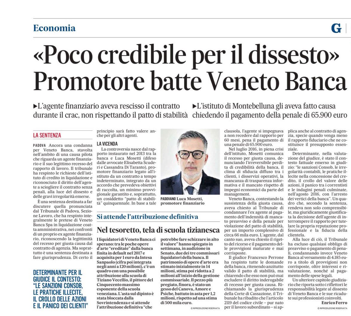 Si allega l’articolo apparso sul Gazzettino il 25.01.2026 relativo alla sentenza del Tribunale di Padova sez. Lavoro, che ha accolto integralmente le difese svolte dall’avv. Cassandra Di Taranto e dalla collega Elisabetta Scuderi.